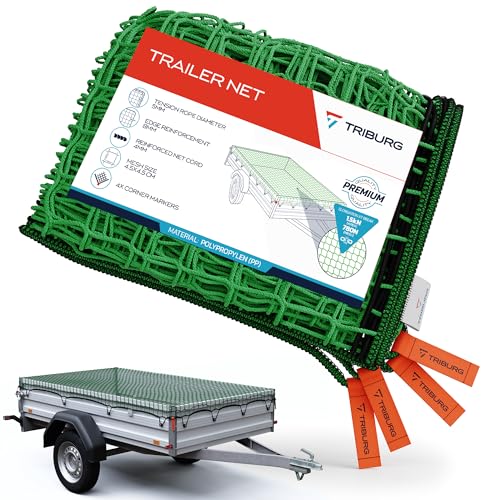 TRIBURG Hängnät 2,5 x 3,5 med hörnmarkeringar och kantförstärkning – släpvagnsnät med spänngummi för optimal lastsäkring – nät för släpvagnar med gummirep