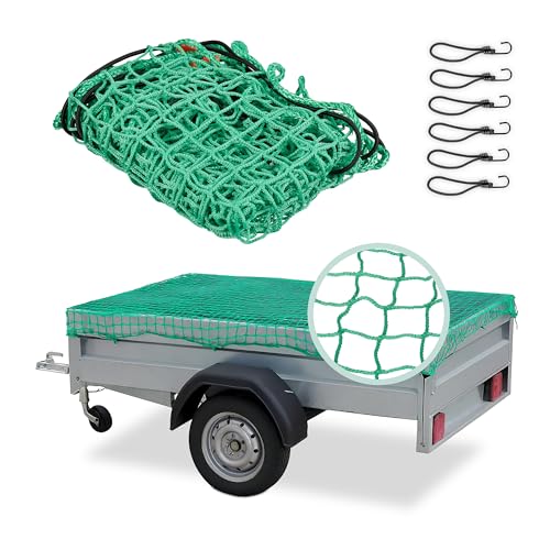 Relaxdays Hängnät, 1,5 x 2,2 m, med 6 krokar, hörnmarkeringar, gummirep, släpvagn lastsäkring, spännnät, grön