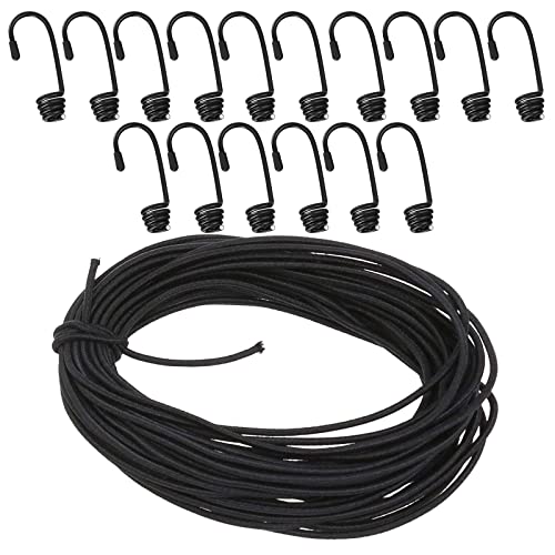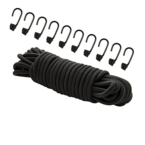 Dreamprint expanderrep 8 mm svart 20 m gummirep gummisnodd spännrep gummikoppel elastiskt rep med 10 spiralkrokar ø 8 mm