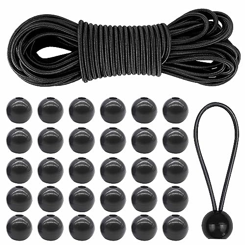 Abma Cord Gummirep 5mm 30M Elastisk Sladd Spännrep Elastiskt Rep Expanderrep för Presenning, Släpvagn, Ryggsäck, Tältstång, Kajak - Svart