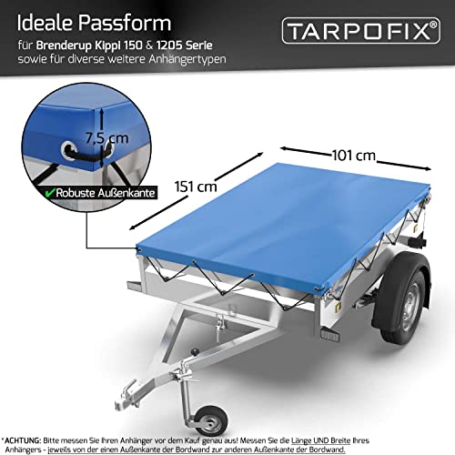 Tarpofix® släpvagnspresenning, platt presenning 151 x 101 x 7,5 cm med gummirep – kantförstärkt släpskyddspresenning – passar perfekt för Brenderup Kippi 150 & 1205 SUB 500 och olika lätta 500 kg släpvagnar – bilpresenning
