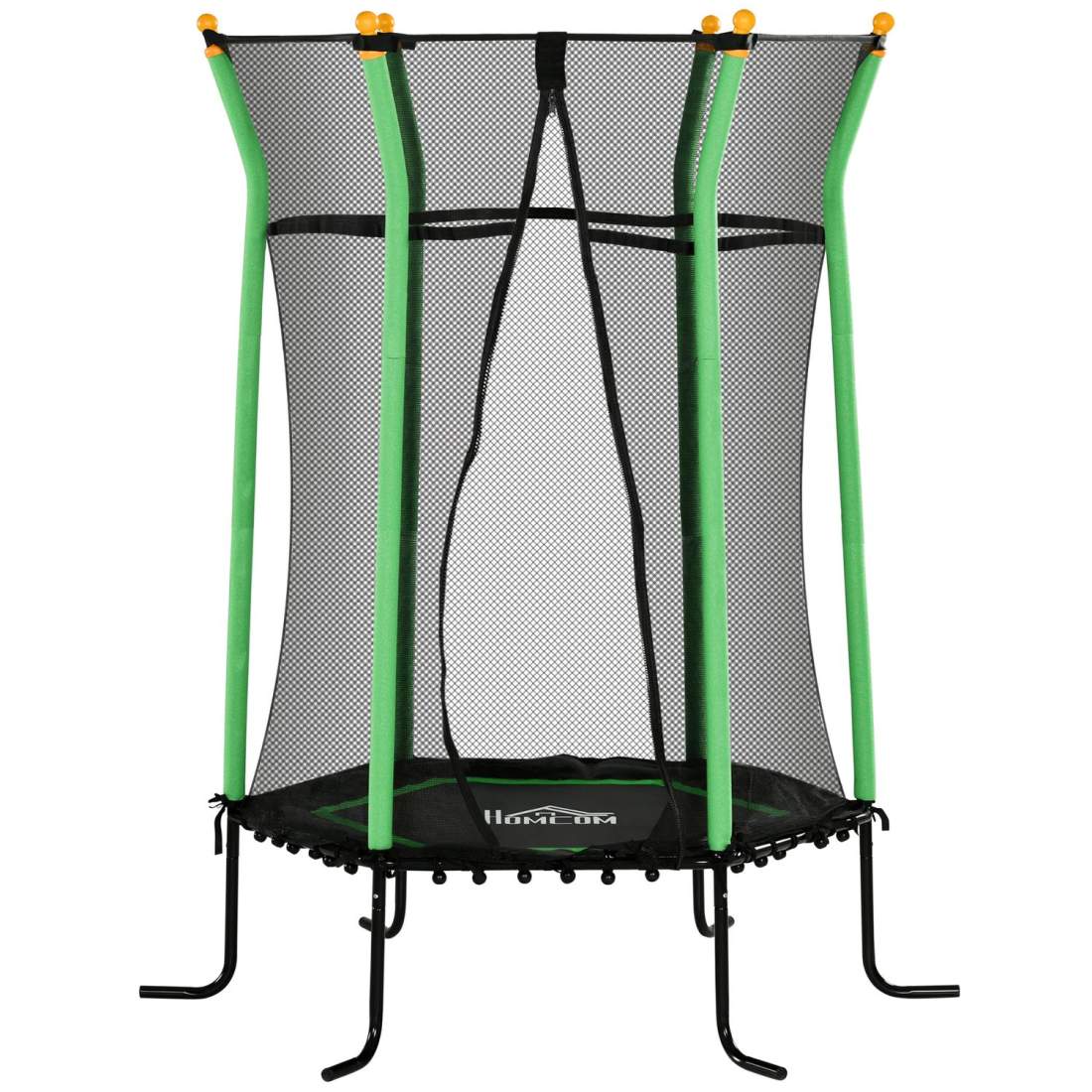 Barnstudsmatta Ø163,5 cm, inomhusstudsmatta med skyddsnät kantskydd gummirep, barnstudsmatta upp till 50 kg, för barn 3-10 år gr