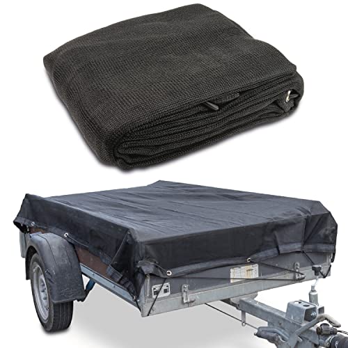 CargoVA Finmaskigt släpvagnsnät 2 x 3,5 m – svart finmaskigt täcknät med gummirep – för optimal lastsäkring