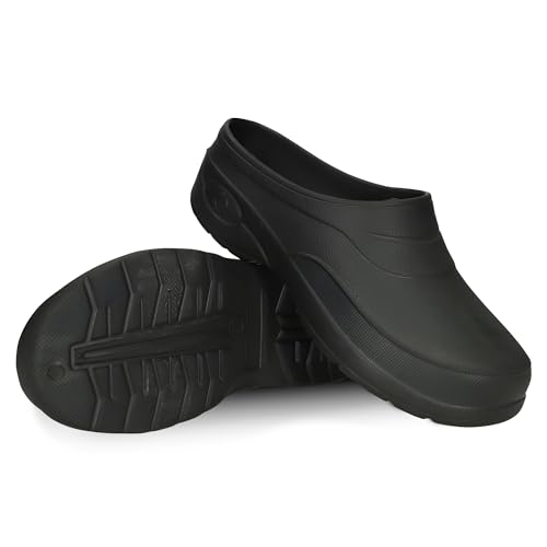 FUZZIO Lätta träskor för kvinnor, bekväma träskor för män, trädgårdsskor för män – fodrade trädgårdstofflor, trädgårdsskor för kvinnor, fodrade gummiskor, stängda, svart, 45 EU