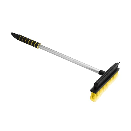 ToM PaR Rengöringsborste med gummiskrapa | 2-i-1-borste med gummiskrapa | Ergonomiskt handtag | Gummi för att torka av vatten och ånga | Slitstarka borststrån | Bilrutor och speglar | 66 cm | Gul