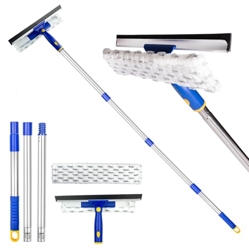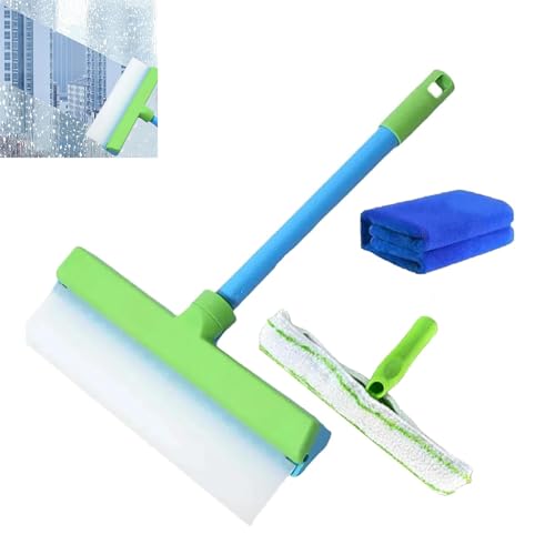ITTAHO Teleskopiskt fönsterskrapare-kit, 2-i-1 fönsterrengöringsutrustningsverktyg med 150 cm långt handtag, gummiskrapa och mikrofiberduk kombo med 180° rotationshuvud för fönster med högt fönster