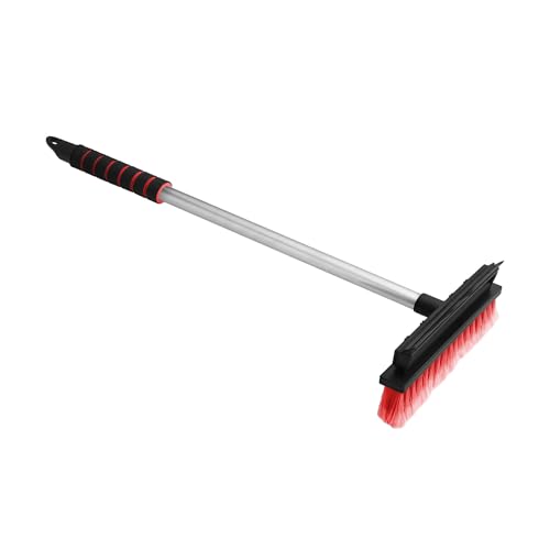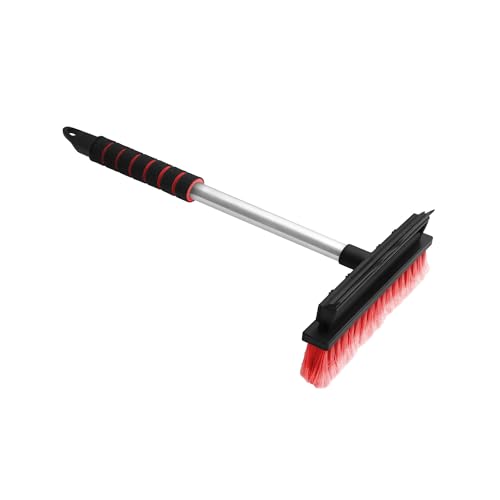 ToM PaR Rengöringsborste med gummiskrapa | 2-i-1-borste med gummiskrapa | Ergonomiskt handtag | Gummi för att torka av vatten och ånga | Slitstarka borststrån | Bilrutor och speglar | 66 cm | Röd