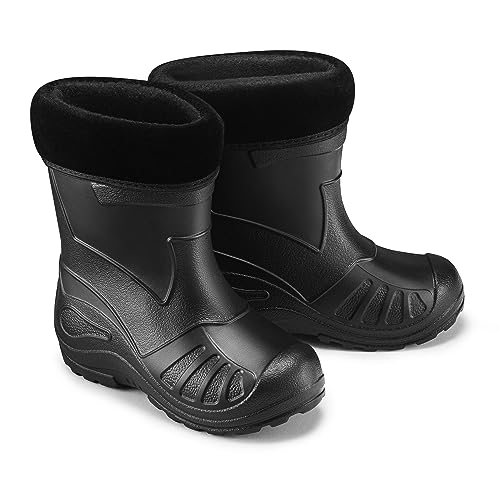 LEMIGO Barn EVA Gummistövlar fodrade filt isolerade skumstövlar 24-37 EU (Svart enfärgat broderi, Europeiska skostorlekar, Stora barn, Numeriskt, Medel, 34)