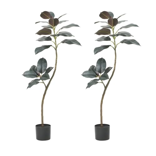 Zstar 2 stycken stora konstgjorda gummiträd, 120 cm realistiskt gummiträd i kruka, verklighetstrogna blad, konstgjorda växter, gummiträd, dekoration för hem, vardagsrum, kontor, trädgård