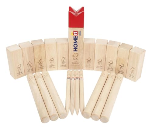Home It® vikingaschack trä utomhus | Kubb vikingaschack set av FSC-gummiträd med kung, 10 kubbar, 6 kaststavar och markeringsnålar | Robust bärväska för trädgård och utomhusspel