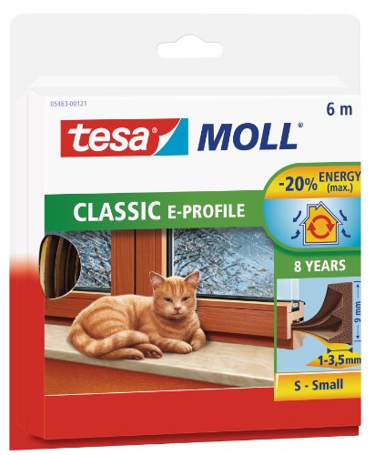 tesamoll E-profil tätning – självhäftande gummitråd för isolerande luckor i fönster och dörrar 9 m x 6 mm Brun