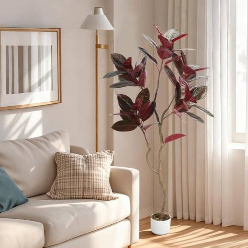 GarveeLife Konstgjort gummiträd 155 cm konstgjord krukväxt med dekorativ kruka, lättskött naturtrogen konstgjord växt trädgård vintergrön dekoration för hem, kontor