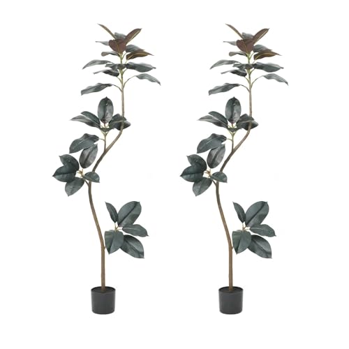 Zstar 2 stycken stora konstgjorda gummiträd, 170 cm, realistiskt gummiträd i kruka, verklighetstrogna blad, konstgjorda växter, gummiträd, dekoration för hem, vardagsrum, kontor, trädgård
