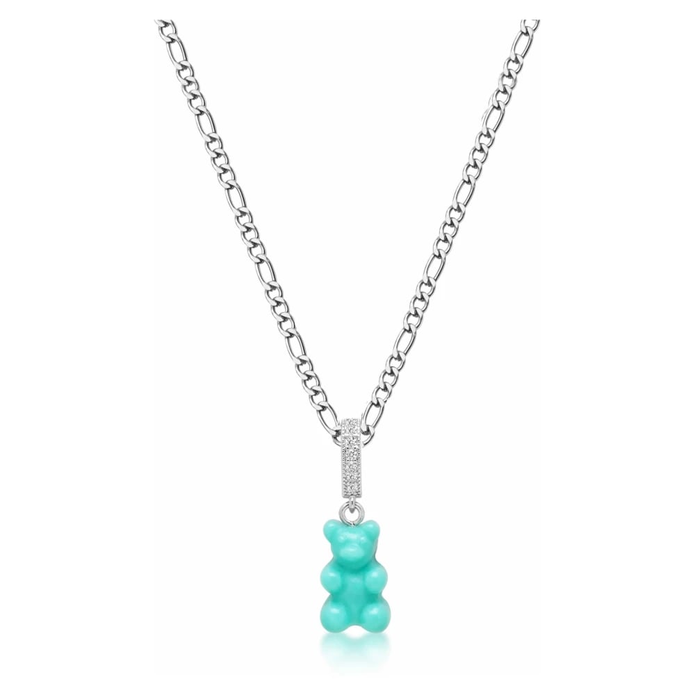 Nialaya, Accessoarer , Herr, M, Men's Silver Necklace with Turquoise Gummy Bear