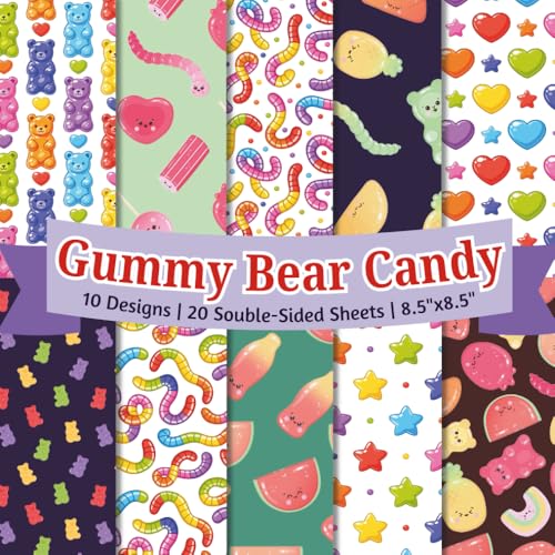 Gummy Bear Candy Scrapbook Paper Craft Pad: 10 Sweet Designs, 20 Double-Side Sheets Printed on 8.5"x8.5" Size Paper With Premium Colors. Perfect for ... Decoupage, Album, Decoration, DIY & More!