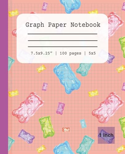Graph Paper Notebook 7.5x9.25" | 100 pages | 5x5: Gummy Bear Design - Grid Paper 5 Squares per Inch - for Mathematics, Engineering, Science, School, Drawing