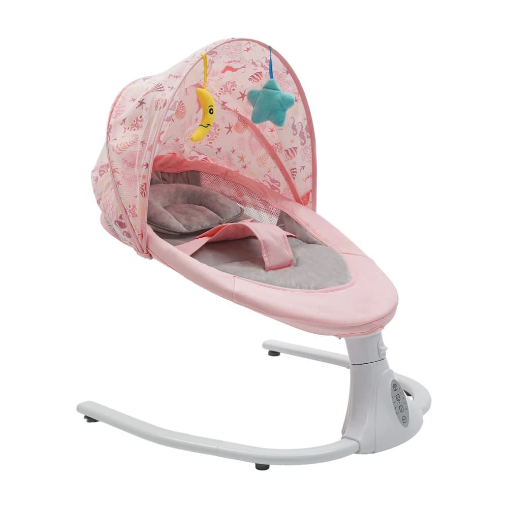 Babygunga - Elektrisk gunga - Fjärrkontroll & Bluetooth-musik - Myggnät - Timer 8/15/30/60 min - 0–18 månader - Max 20 kg - Rosa