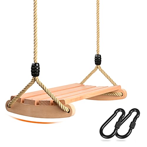 Lyndwin Gungstol i trä, gunga, trä för vuxna och barn, trädgård med justerbart rep, inomhus och utomhus, trägunga utomhus, gungbräda vuxna upp till 100 kg