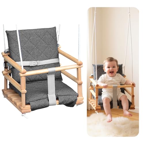 Skyline Babygunga i trä, barngunga, gunga för barn, gunga 3-i-1 säkerhetsbälte, småbarnsgunga, babygunga och gungstol, barngunga trä, inomhus, utomhus