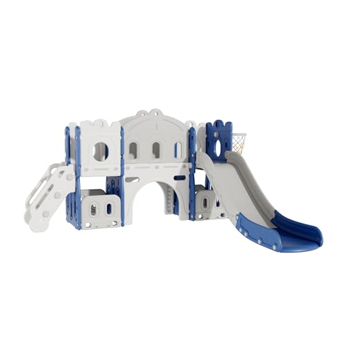 Prokoke Babyrutschkana och gunga fristående rutschkana för barn gunga lekplats lång inomhus utomhus aktivitetscenter lekutrustning (BlueWhite Island)