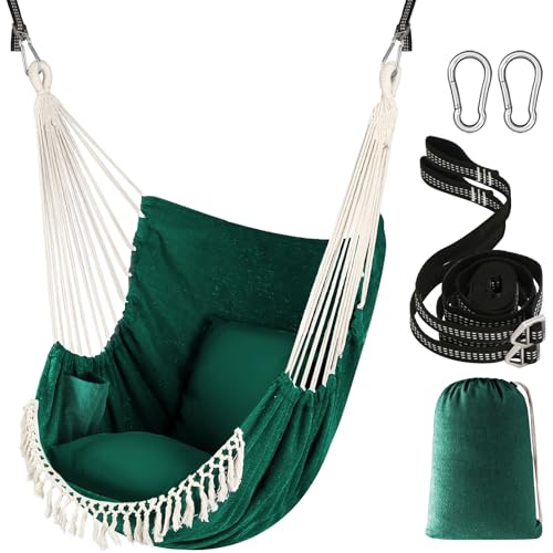 Chihee Hängstol hängande gunga 2 sitskuddar ingår, starka remmar och krokar för enkel upphängning mjuk bomullsväv hängande stol sidoficka stor tofs stol set komfort inomhus utomhus