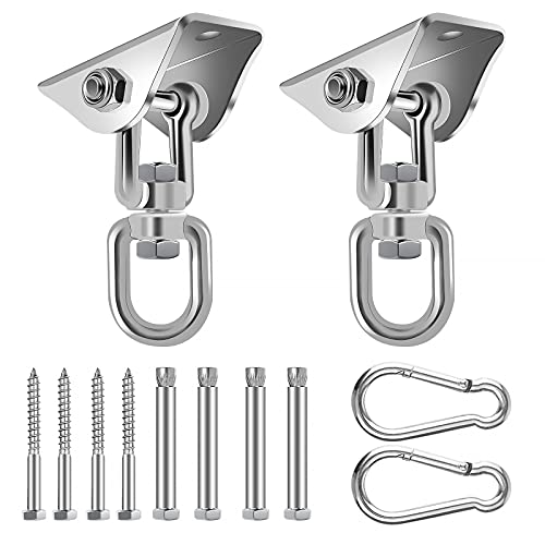 SWAWIS Takkrok, hängstol, gungkrok, sats, 450 kg kapacitet 360° vridning, takkrok, gunga, tung last, 304 rostfritt stål, takfäste för hängstol, yoga, hängmatta, stol, sandsäck, 2 stycken
