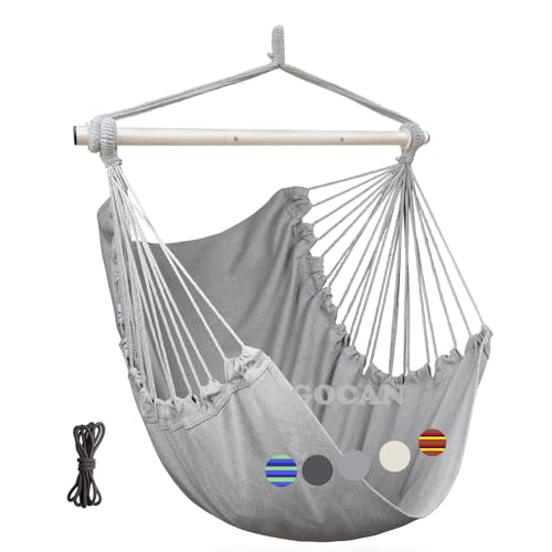 GOCAN Hängmatta stol stor hängmatta gunga, 110 x 150 cm belastning 150 kg, bomull hängmatta stol metall sprida bar bred sits gungstol (grå)
