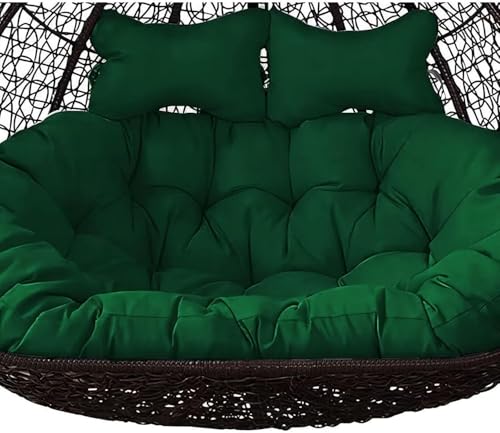 60x43 in Dubbel hängande korg gunga ägg stol dyna, 2 sittplatser vattentät avtagbar tjockare hängmatta dyna ersättning med kudde, vagga dyna utomhus patio trädgård ryggkuddar Dark green