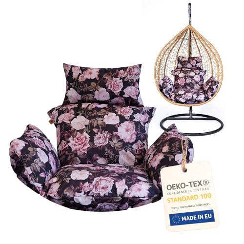 Bielik dyna för hängstol, trädgårdsdyna, för upphängd gungstol, sittdyna för hängande korg, svart + rosor