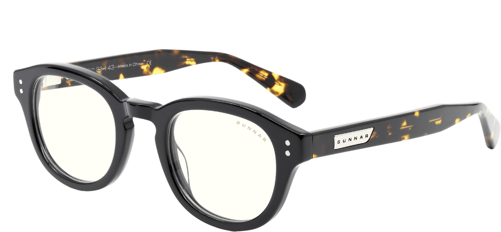 GUNNAR Spel- och datorglasögon | Modell: Avlyssning, Ram: Onyx, Linser: Bärnsten | Patenterade glasögon med blått ljus | 65% blått ljus och 100% UV-ljusskydd