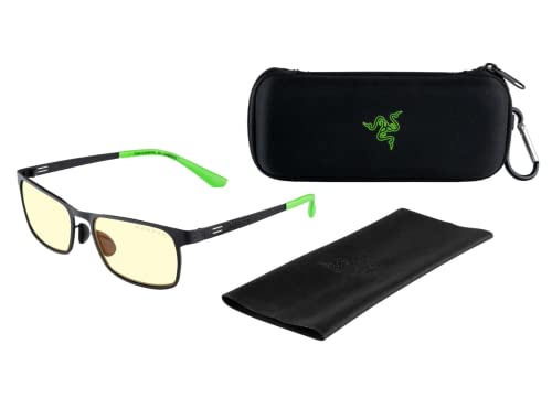 GUNNAR Gaming- och datorglasögon | Ungdomsglasögon | Razer MOBA(12+), Onyx Frame, Amber Tint | Patenterade glasögon med blått ljus | 65% blått ljus och 100% UV-ljusskydd