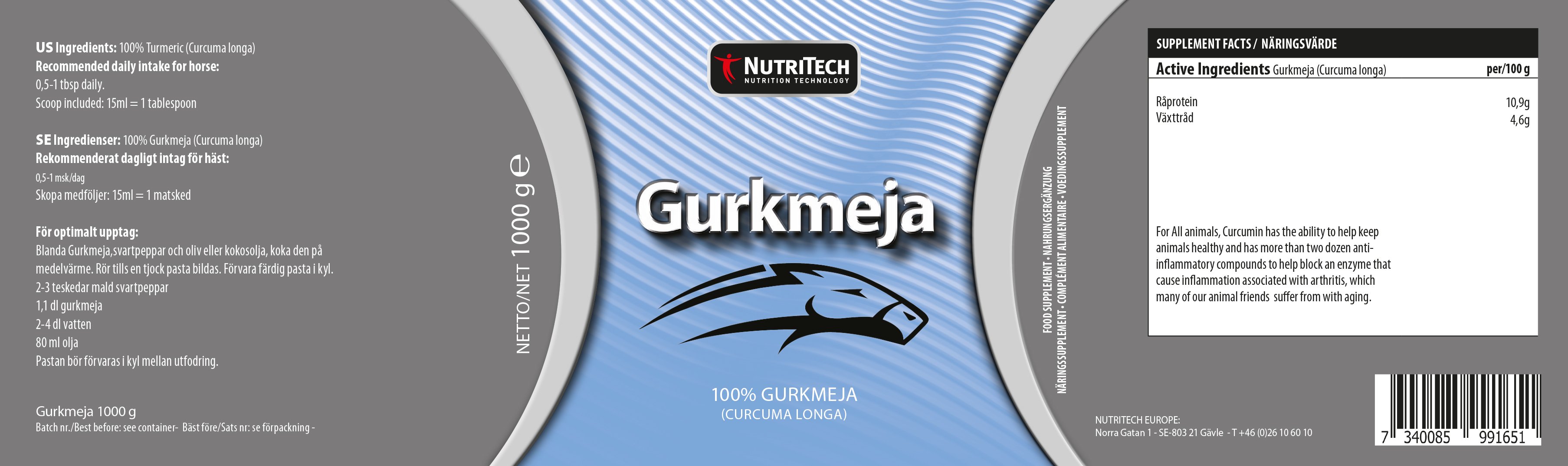 Gurkmeja pulver (1kg), Curcuma 100% naturligt, försiktigt torkat och slipat gurkmeja rot, inga tillsatser, Vegan