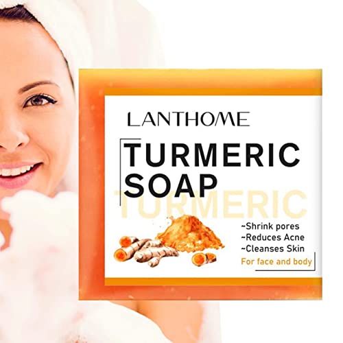lubiu gurkmeja tvål bit – 100 g naturlig tvål – antibakteriell tvål mot finnar i ansikte och kropp – Tormeric Soap Bar – ansiktstvål