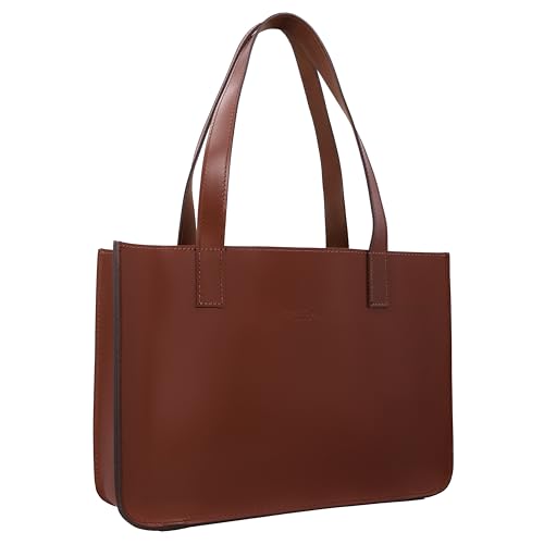 Gusti shopper läder Agatha S – kompakt läderfodral för universitet och kontor – elegant litet lädershoppingväska dam med robust bärrem, BRUN
