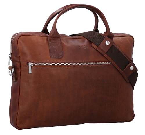 Gusti axelväska läder-Elijah kromfri portfölj univäska axelväska arbetsväska messengerväska lärarväska affärsväska stor laptopväska vintage läder, BRUN