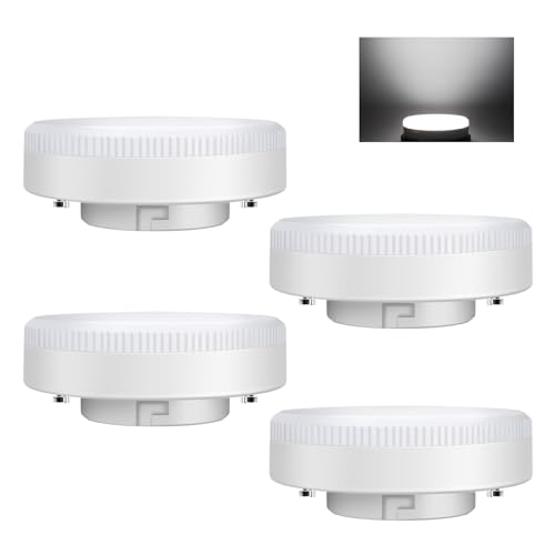 ILEEDear GX53 LED-glödlampa 9W, kall vit 6 500 K, inte dimbar, motsvarande 71 W halogenlampa, GX53 LED-lampa för skåp, set med 4