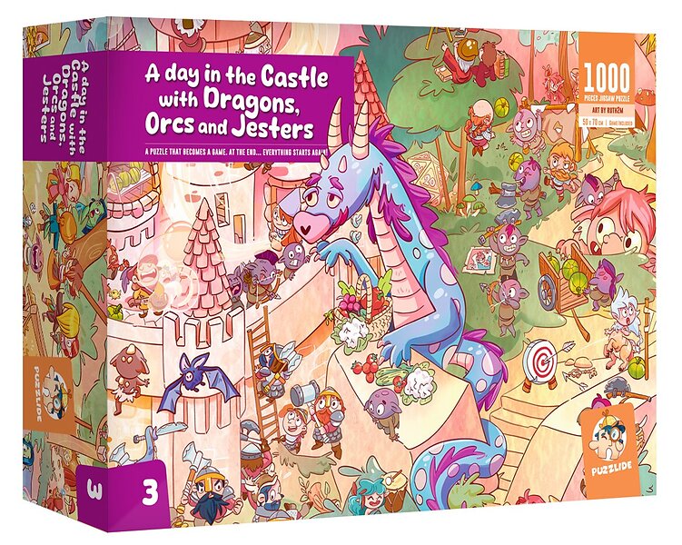 Puzzlide En dag i slottet med drakar, orcher och gycklare 1000 Bitar