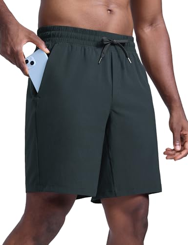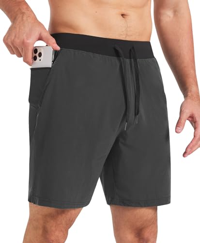 Comilaka löparshorts för män sport gym träningskläder träningsshorts lätt 18 cm snabbtorkande shorts med blixtlåsfickor, Mörkgrått, L