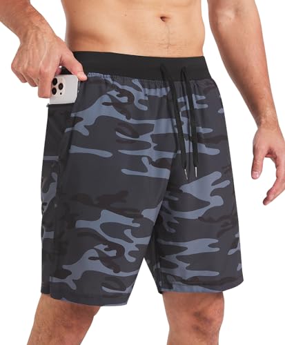 Comilaka löparshorts för män sport gym träningskläder träningsshorts lätt 18 cm snabbtorkande shorts med blixtlåsfickor, Svart kamouflage, XL
