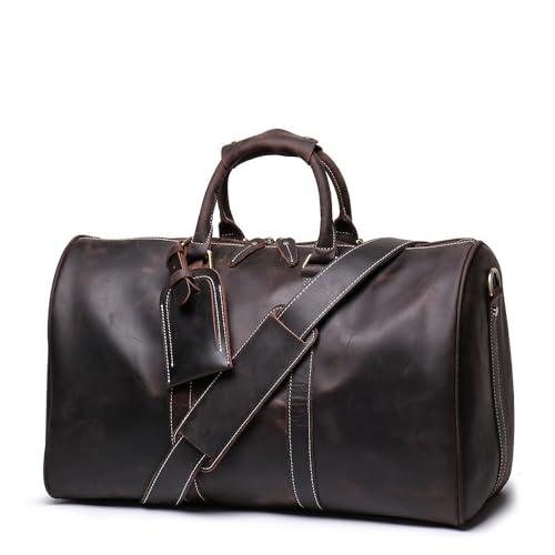 Äkta läder män resväska kohud bagage väskor axelväska helgväska övernattning gym sport handbagage duffelväska, Kaffe-18 tum, Klassisk