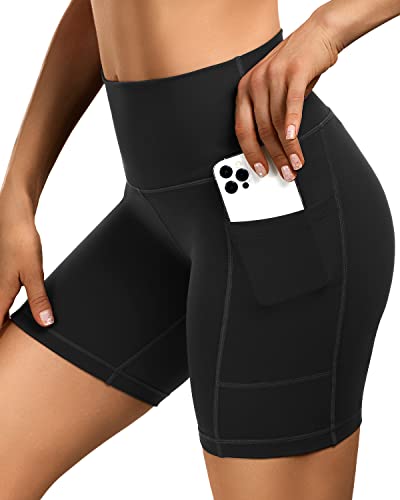 Sportneer Cykelbyxor, dam, korta shorts, 18 cm, korta sportbyxor för kvinnor, med mobiltelefonficka, gym, shorts, hög midja, sportbyxor, korta, bikershorts, svart, XXL
