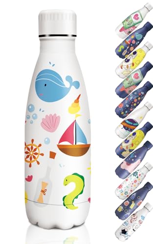 HoneyHolly Termisk flaska, 18/8 Rostfritt stål Termisk Flaska - 350 ml - BPA-fri vattenflaska Gym, Isolerad Undervatten, Droppsäker, Termosflaska, för Barn, Skolan