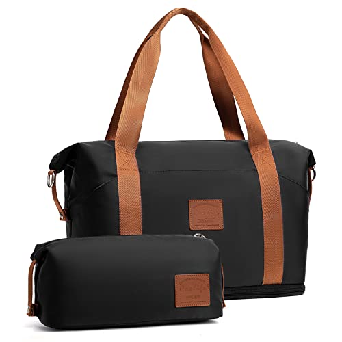 COOLIFE Resväska dam sportväska 40 x 20 x 25 Ryanair handbagage väska weekender bag simväska vattentät reseväska duffle bag träningsväska kvinnor för resor gym, svart, 2-teiliges Set, Weekender Bag simväska vattentät reseväska duffelväska