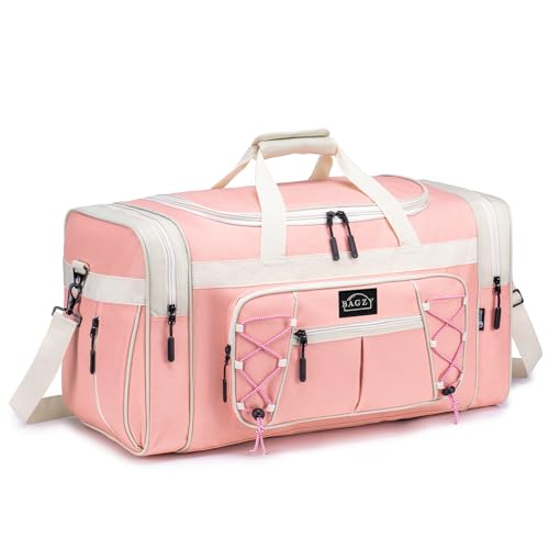 BAGZY Resväska 70 Liter Stor Sportväska Herr Dam Vattentät Handbagage Koffer Kabin Holdall Bag Weekender Resväska Duffle Bag Handväska Resväskor för Gym Camping Resor Semester Rosa