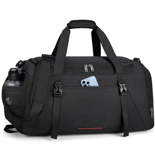 IGOLUMON Sportväska stor herr med skofack och våtfack resväska vattentät dam 40 l simväska träningsväska fitness väska handbagage väska weekender gym duffle bag svart, svart, 55 l