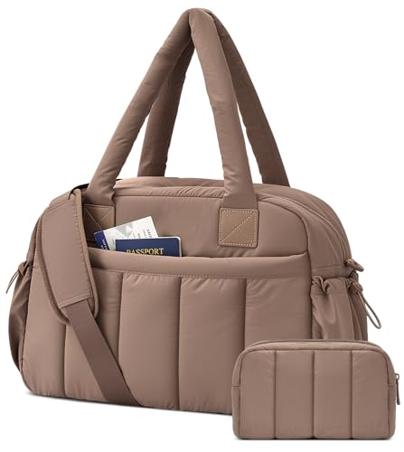 oscaurt Resväska buffer sportväska 24 l weekender dam vikbar handbagage blöjväska resa duffle bag med PVC våt väska gym väska, Kamel, M