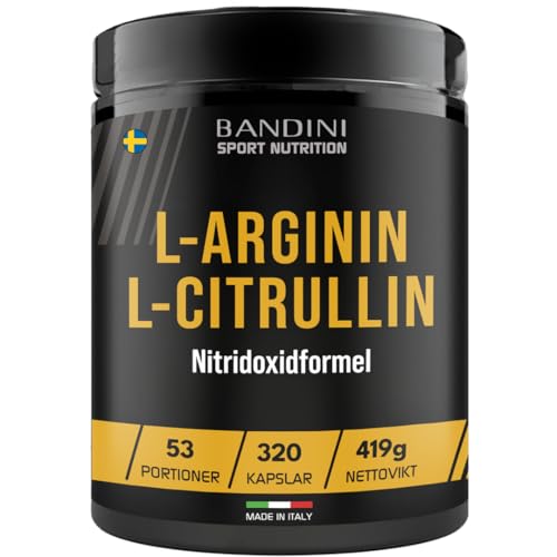 Bandini® L-Arginin + L-Citrullin 320 kapslar (1100 mg per kapsel), Arginin + Citrullinmalat för preworkout, kosttillskott för gym, uthållighet, muskelåterhämtning, semi-essentiella aminosyror