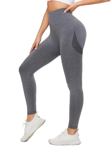 Aoxjox Dam hög midja träning gym Vital sömlös leggings yogabyxor, A Charcoal Grey Marl, XS