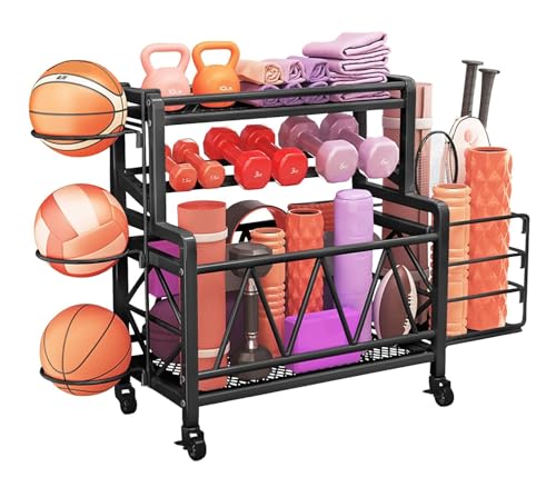 Hantlar Rack med Hjul Träningsutrustning Viktstöd Yoga Verktyg Mattor Kettlebell Rack Gym Hem Gym