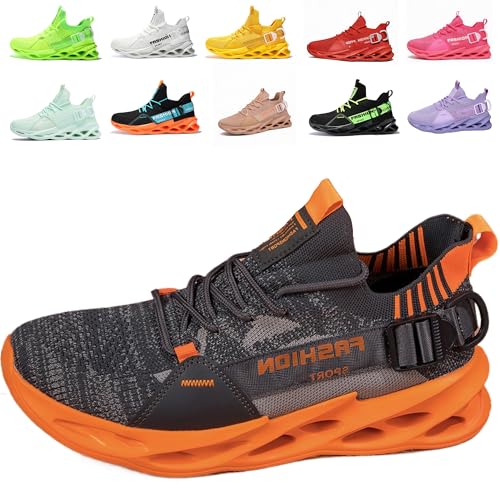 Gymnastikskor herr dam sportskor löparskor andas lättvikt halkfri gym fitness skor mode luftkuddar sneakers EU 36–46, G133 Grå Orange, 38 EU